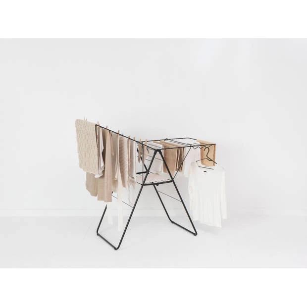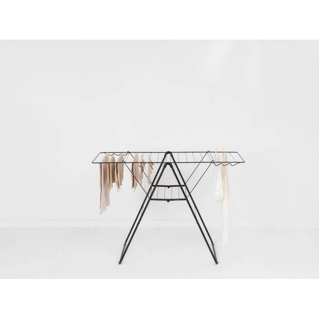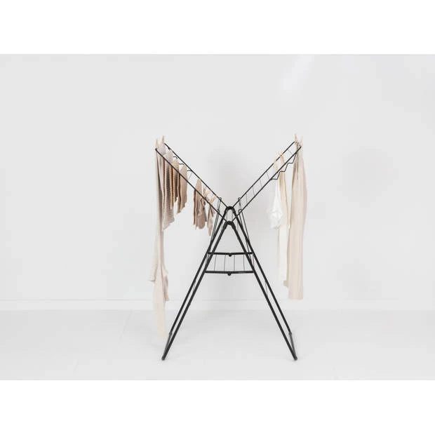Dit Brabantia HangOn Droogrek heeft 20 meter droogruimte en haken voor 6 kleerhangers. Zo kun je dus overal in huis je broeken hangend drogen of je delicate kledingstukken plat drogen. Alles droog? Klap hem in en berg ‘m op. De beste hangplek voor je was!