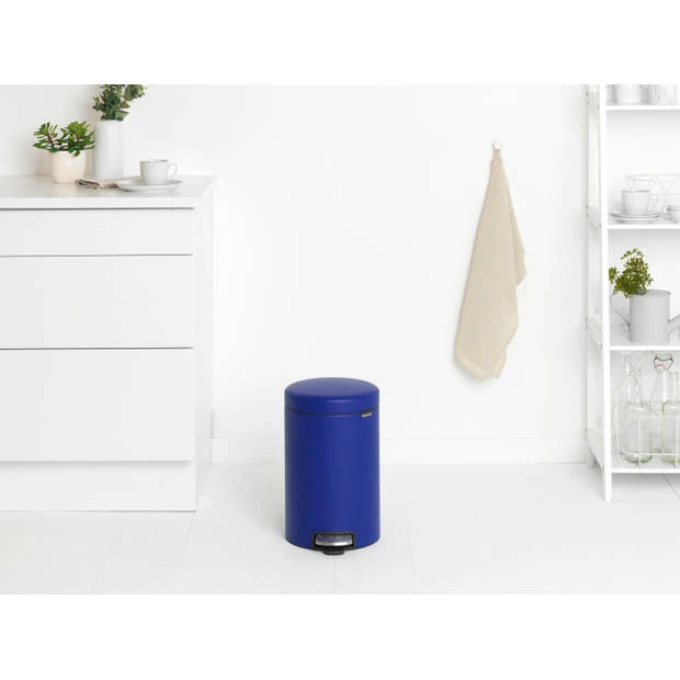 Een Brabantia pedaalemmer NewIcon 12 liter is klein genoeg om onder het aanrecht te verstoppen, maar stijlvol genoeg om in het zicht te zetten – vooral met het hygiënisch roestvrijstalen pedaal en poederige minerale coating. Natuurlijk heeft deze robuuste afvalbak een geurvrij, zacht sluitend deksel en handig anti-kantelblok. Ideaal voor in je thuiskantoor, keuken of een andere kamer die een luxe accent kan gebruiken.