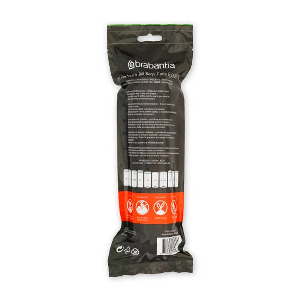 Perfect passende Brabantia PerfectFit afvalzakken op een rol voor Brabantia pedaalemmers, prullenbakken, afvalemmers, Touch Bins etc. Voor elke bak een passende zak. Door de handige trekband sluiting is de volle zak makkelijk te verwijderen en dicht te knopen.