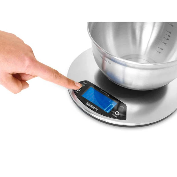 Verras een thuiskok met de compacte en stijlvolle Brabantia Profile digitale keukenweegschaal. Deze is digitaal en zeer nauwkeurig. De weegschaal staat stabiel dankzij de antislipvoetjes. Daarnaast heeft hij ook een geïntegreerde kookwekker.
