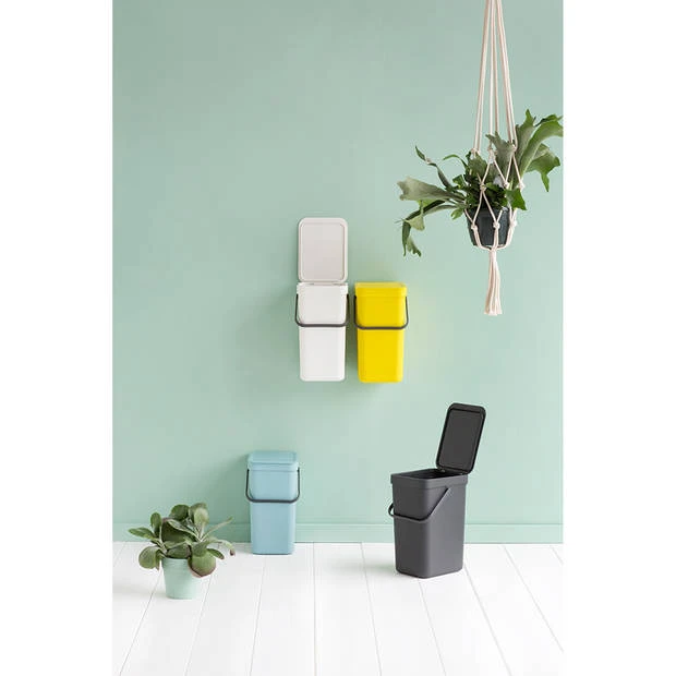 De Brabantia Sort & Go afvalemmer van 12 liter kun je gebruiken voor flessen, blik, plastic of wat je verder maar kwijt wilt. Het grote handvat en de handige grip aan de onderkant van elke afvalemmer maken het legen gemakkelijk. Je afval goed geregeld.