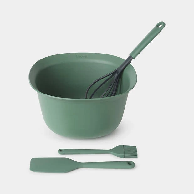 Spullen klaar, bakken maar met deze praktische Brabantia Tasty+ bakset. Een complete en slimme set met een garde, mengkom, bakborstel en spatel.