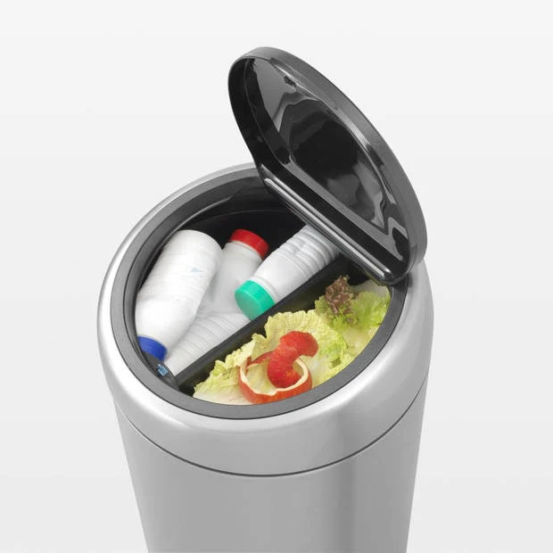 De Brabantia Touch Bin Recycle is een stijlvolle, milieuvriendelijke afvalemmer en ideaal voor het scheiden van afval. Voorzien van 2 kunststof binnenemmers met een inhoud van 2×20 liter. Deze afvalemmer kan vlak tegen een wand gezet worden. De ‘Soft-Touch’ manier van openen, maken ‘m extra handig in gebruik.