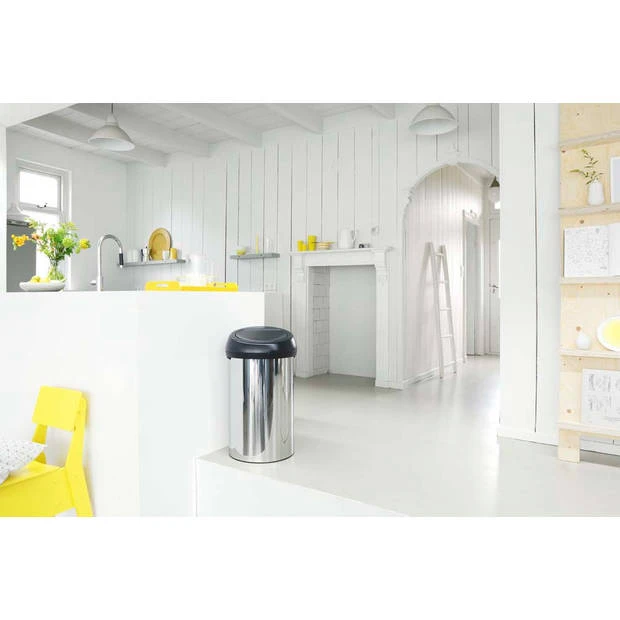 In deze grote XXL Brabantia Touch Bin gaat maar liefst 60 liter afval. Een zee van ruimte voor je afval. Dankzij de grote opening kan er een vloerblik zonder te morsen in geleegd worden. Door de ‘soft touch’ sluiting opent en sluit het deksel geruisloos.