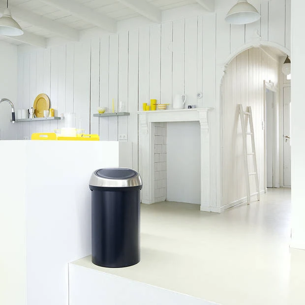 Een zee van ruimte voor uw afval! In deze extra grote Brabantia Touch Bin gaat maar liefst 60 liter afval. En dankzij de grote opening kan een vloerblik zonder te morsen erin geleegd worden. Door de ‘soft touch’ sluiting opent en sluit het deksel geruisloos.