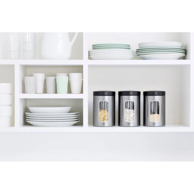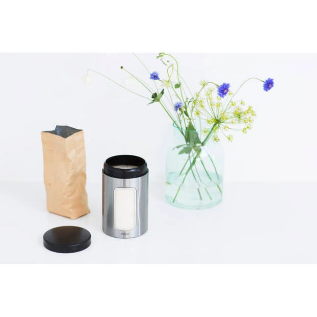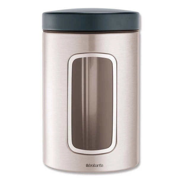 Op zoek naar een oplossing voor het opbergen en bewaren van koffie, thee, suiker of iets anders? Dan is deze Brabantia vensterbus van 1,4 liter precies wat je nodig hebt. Dankzij de aromadichte ‘klik’-deksel blijft de inhoud lang goed. Het anti-statisch kunststof venster zorgt ervoor dat de inhoud en hoeveelheid altijd zichtbaar is.