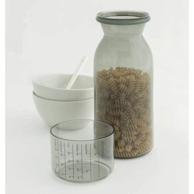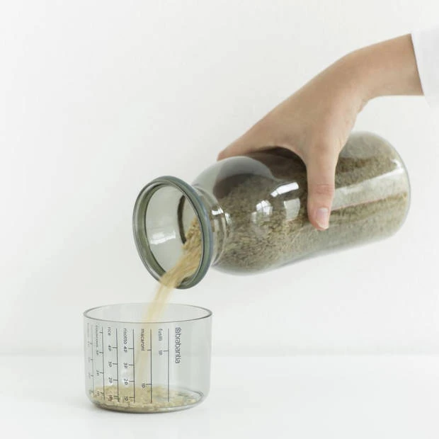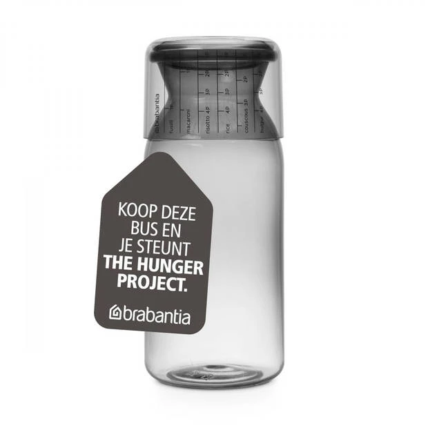 Met deze slimme en vooral mooie Brabantia Set van 2 voorraadbussen met maatbeker van 1,3 liter vermijdt je etensrestjes en verspil je minder eten. Door de duidelijke markeringen op de maatbeker kun je precies de juiste porties rijst, pasta’s, couscous enz. per persoon afmeten. En alsof dat nog niet genoeg zou zijn: met de aankoop van deze voorraadbus steun je The Hunger Project, een wereldwijde non-profit organisatie die zich inzet voor een duurzaam einde van chronische honger wereldwijd.