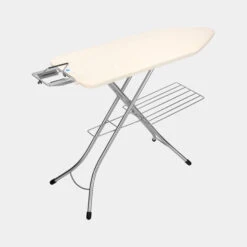 Brabantia Strijkplank C, 124×45 Cm Ecru Met Rvs Strijkijzerhouder En Linnenrek – Brilliant Silver